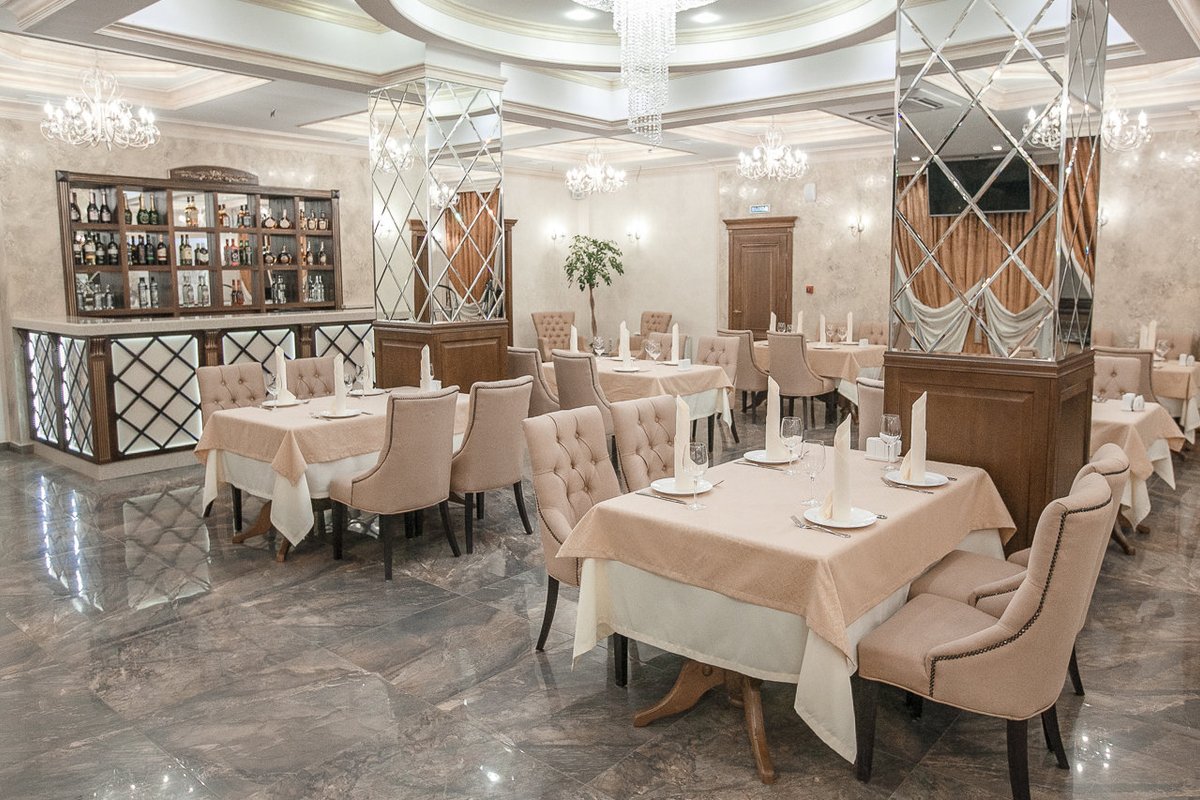 Наш ресторан открывает потрясающий панорамный обзор! Он славится не только мастерством шеф-поваров и баром - мы берём оформлением снаружи и внутри. Если вам важна эстетика, приходите в наш ресторан.